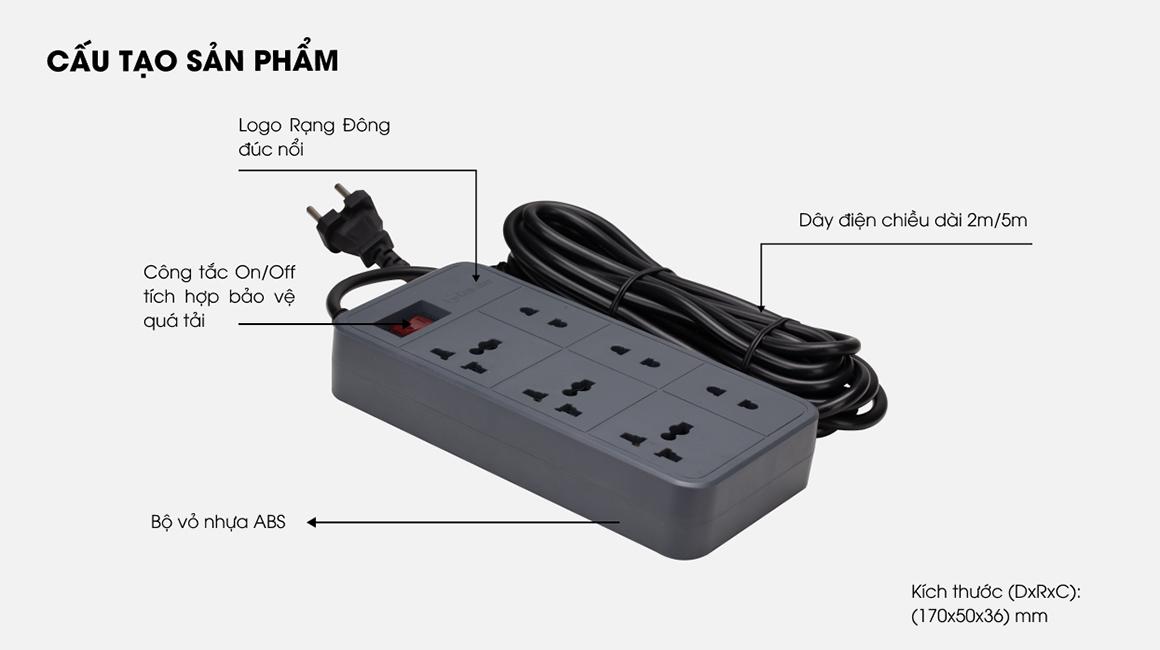 Khi sử dụng ổ cắm kéo dài để cấp nguồn cho thiết bị điện, chúng ta thường không để ý đến sự tương thích về công suất giữa chúng, dẫn đến quá tải ổ cắm, gây ra các sự cố không may về điện. Ổ cắm kéo dài Rạng Đông tích hợp rơ-le chống quá tải 15A, sẽ tự động ngắt bảo vệ người và tài sản cho bạn và gia đình bạn.
